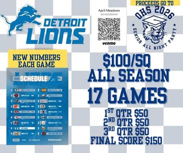 Donate once, and win all season long! Venmo @ohsSANP along with your number selections and phone number to lock in your squares today.